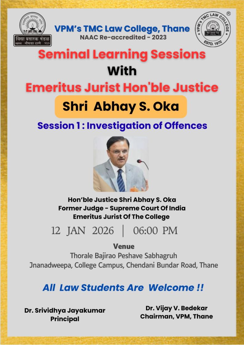 "I am delighted to welcome you to the web portal of VPM’s TMC Law College, Thane, an institute dedicated to delivering quality legal education. Established in 1972, the college has stood by aspirants in turning them into lawyers." Read More...